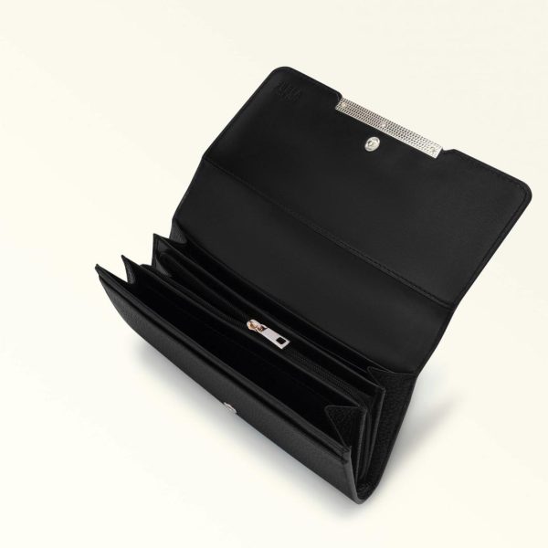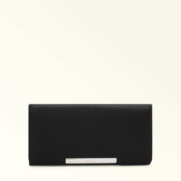 Furla Camelia Compact Wallet in Nero – Women’s Textured Leather